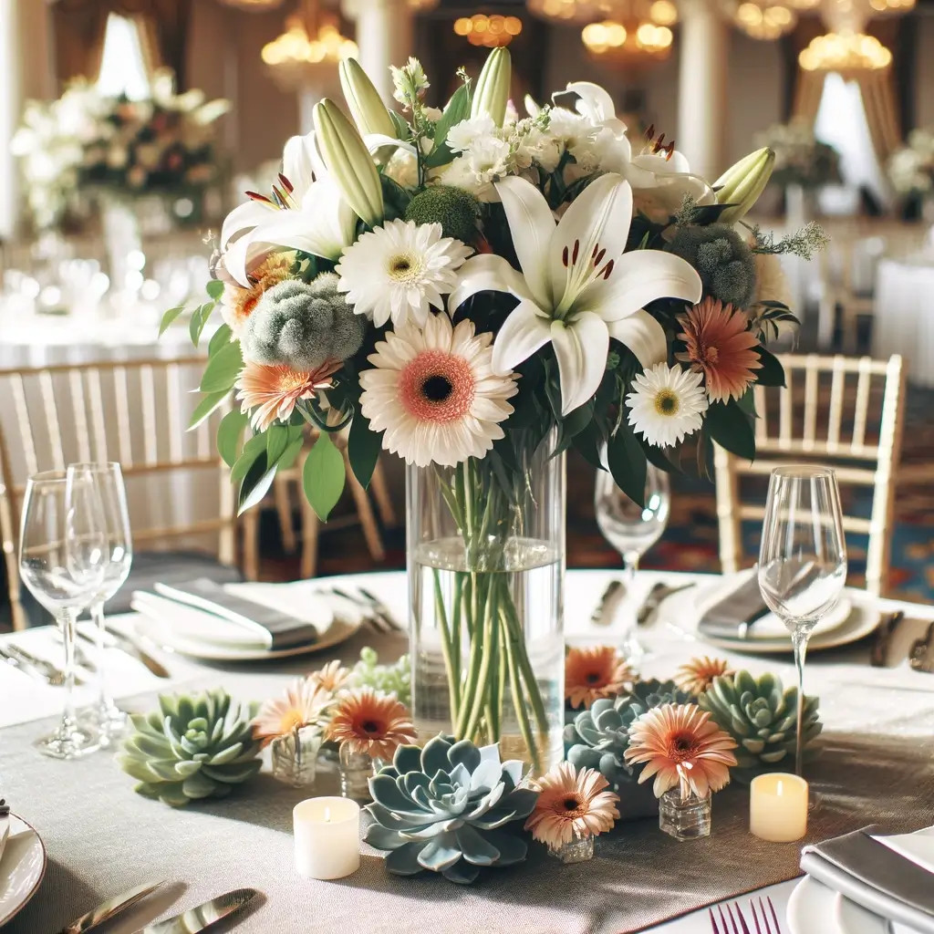 Nuestros centros de mesa están diseñados para aportar elegancia y frescura a cualquier evento. Con una variedad de flores frescas y de temporada, cada centro se adapta al estilo de tu celebración, creando una atmósfera acogedora y sofisticada. Perfecto para bodas, cenas o reuniones especiales.